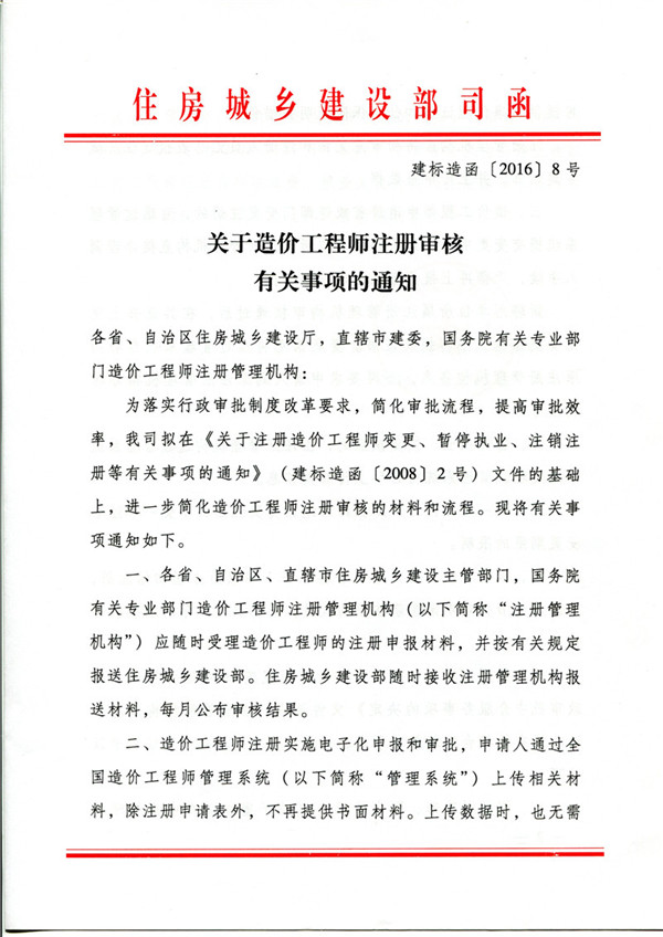 造價工程師注冊審核有關(guān)事項的通知(建標(biāo)造函[2016]8號)