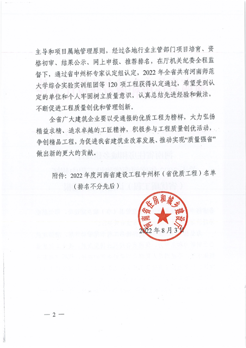 附件:河南省住房和城鄉(xiāng)建設(shè)廳關(guān)于2022年度河南省建設(shè)工程中州杯(省優(yōu)質(zhì)工程)認(rèn)定結(jié)果的通報(bào)